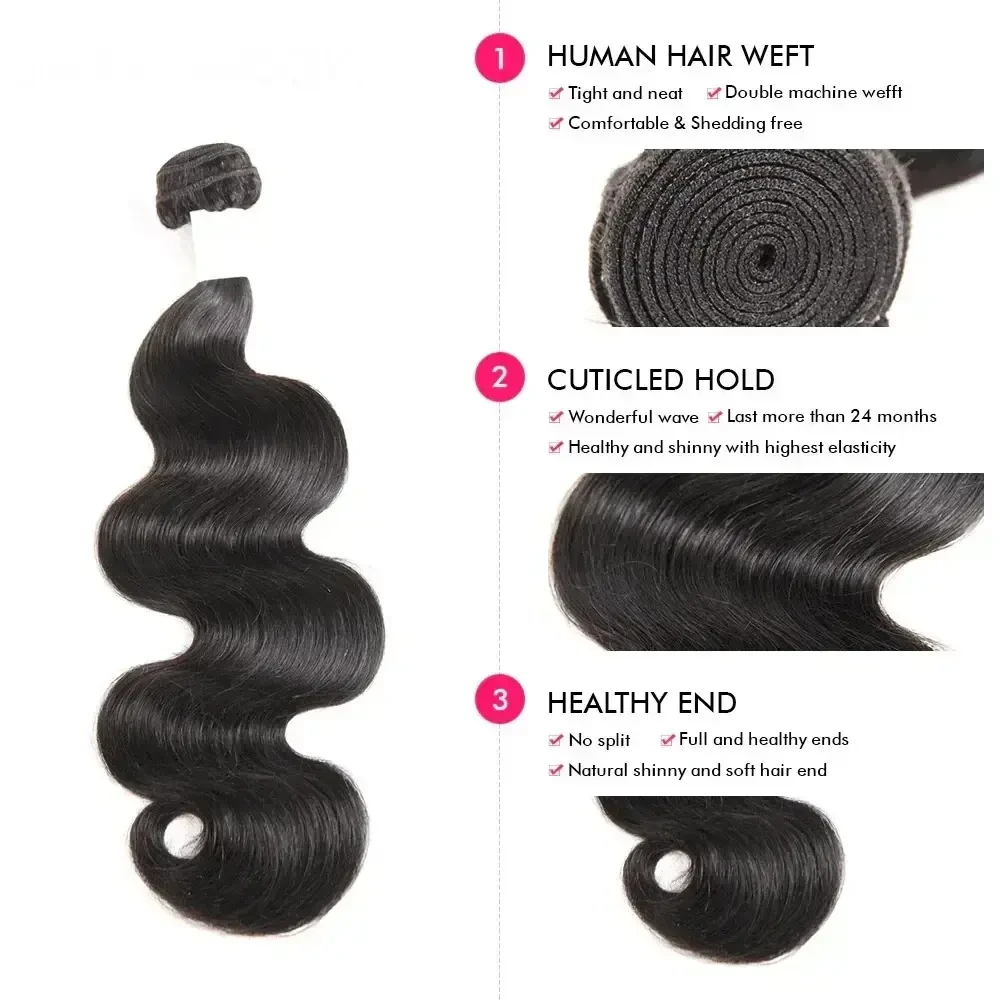 3/4 Bundles Body Wave Hair 10A Brazilian Human Hair Bundles Natural Hair Extensions