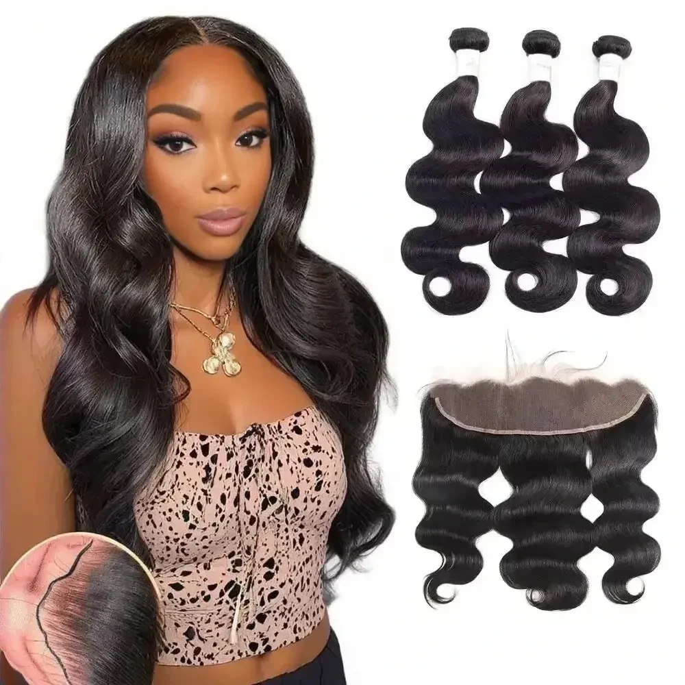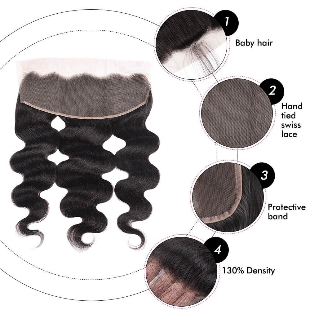 10A Grade 3 Bundles Brazilian Body Wave Hair With 13*4 Ear to Ear Lace Frontal Closure