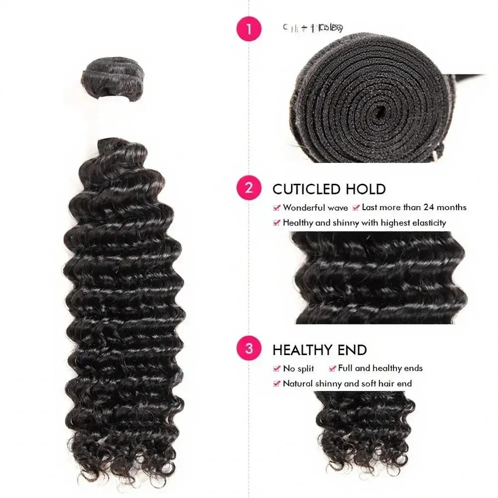15A Deep Wave Hair Extensions Double Drawn Human Hair 3 Bundles Deal Full From Top To End