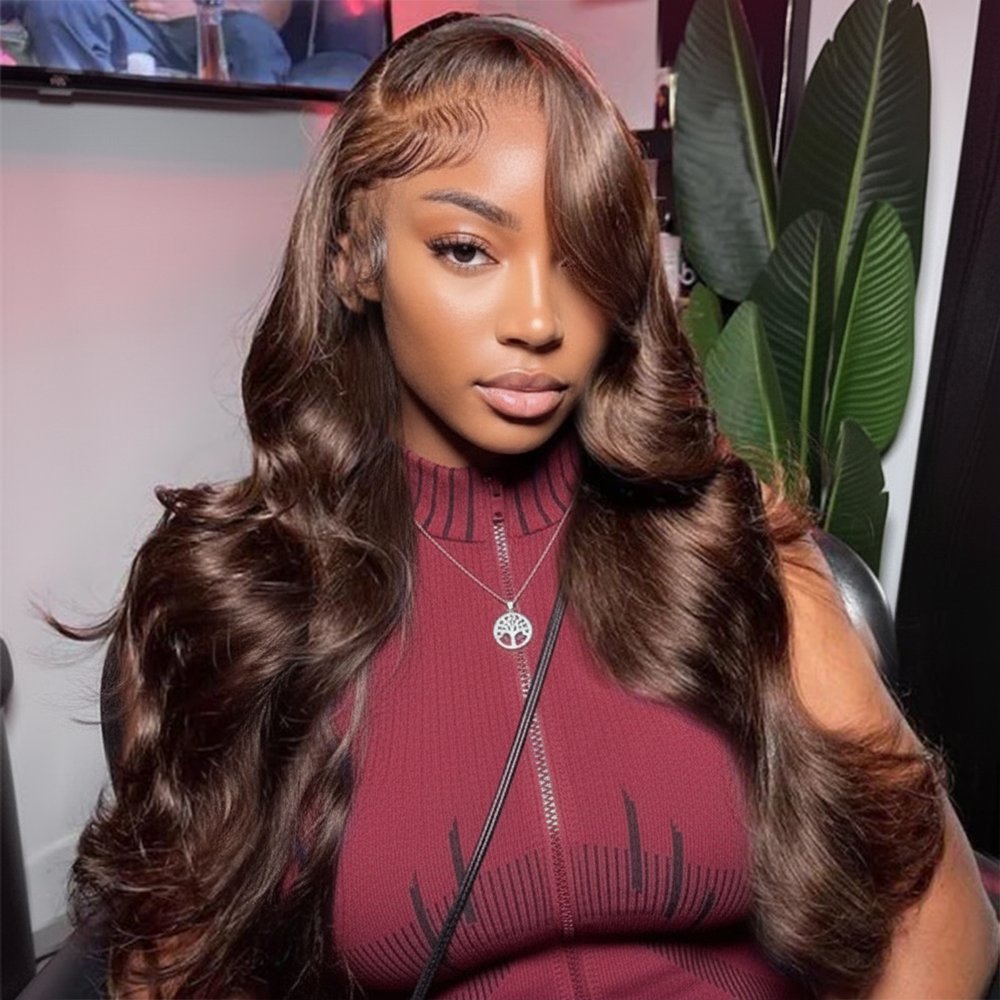 Chocolate Brown 13×4 6×5 Pre Cut Transparent Lace Frontal Closure Wigs #4 Dark Brown Color