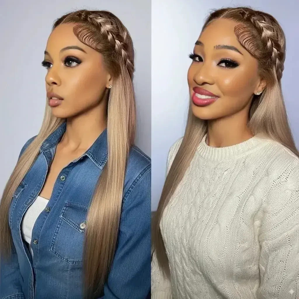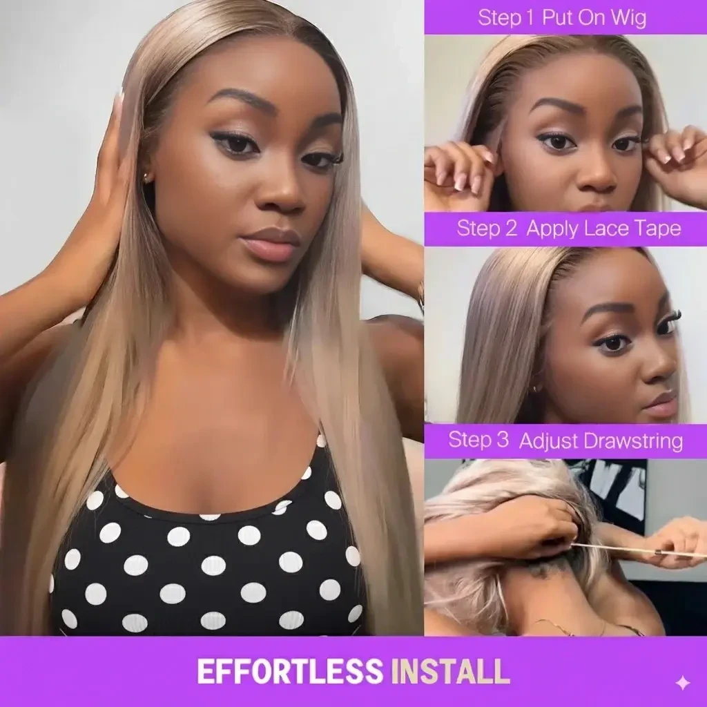 13×6 Three-Go™ Ash Blonde Ombre Glueless Wigs Silky Straight With Drawstring 100% Human Hair Wig