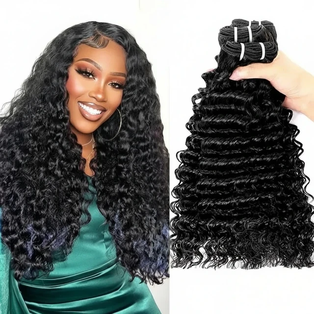 15A Deep Wave Hair Extensions Double Drawn Human Hair 3 Bundles Deal Full From Top To End