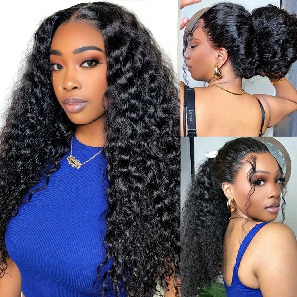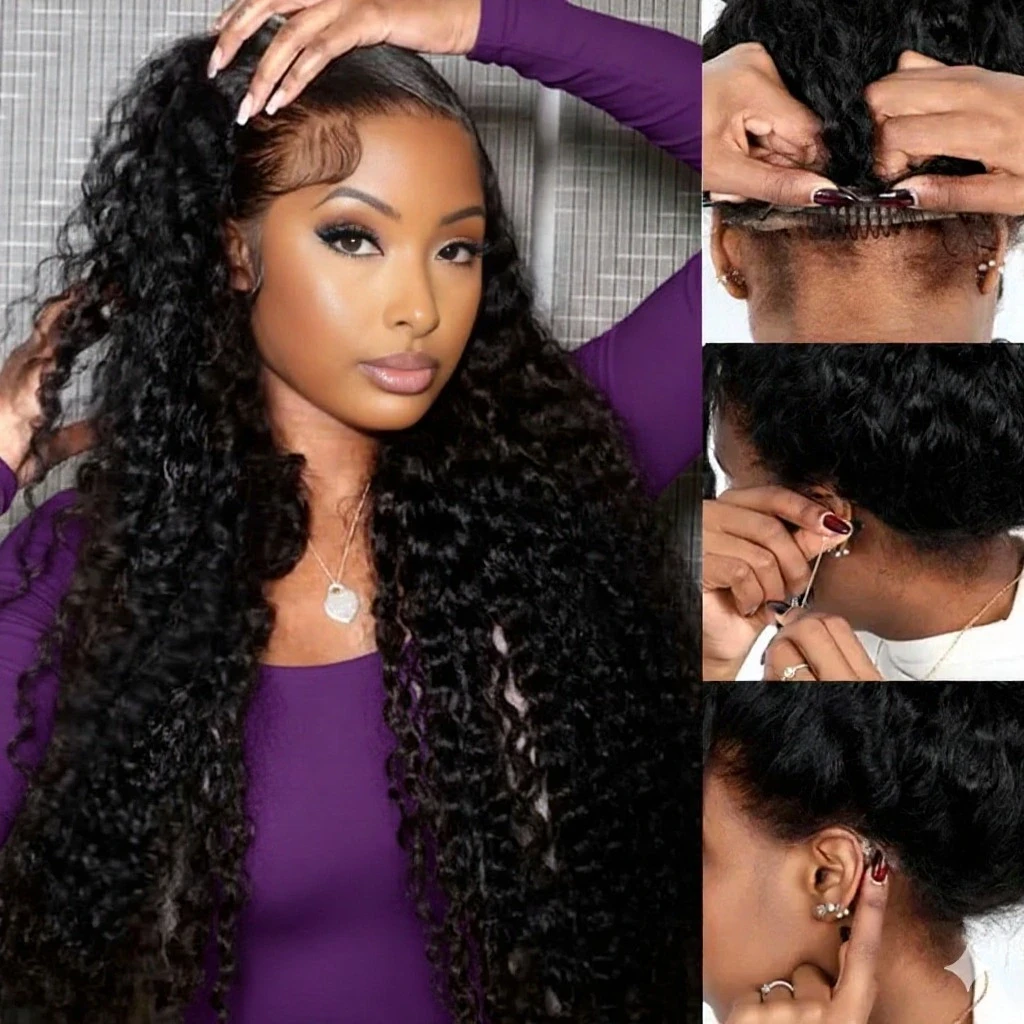 360 Full Lace Glueless Deep Wave Wigs Invisi Drawstring Natural Black Pull & Go