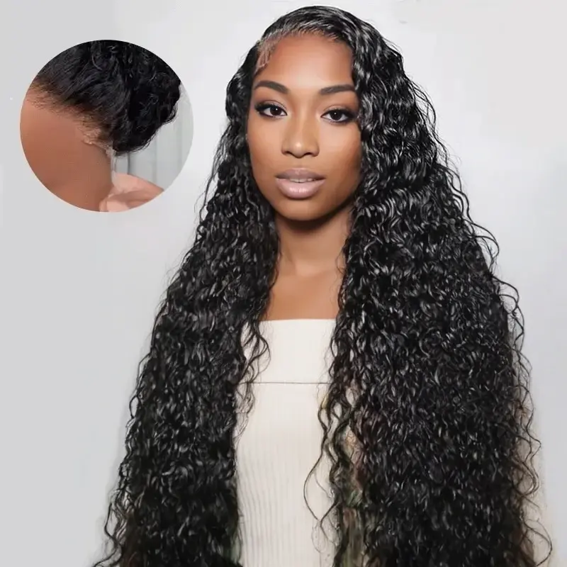 360 Full Lace Glueless Water Wave Wigs Invisi Drawstring Natural Black Pull & Go