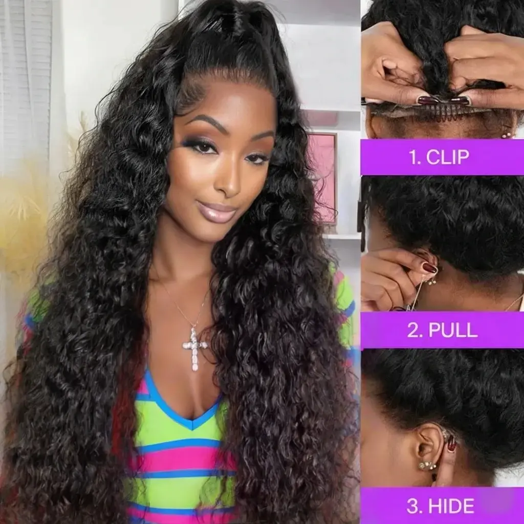 Be the first to review “360 Full Lace Glueless Water Wave Wigs Invisi Drawstring Natural Black Pull & Go”