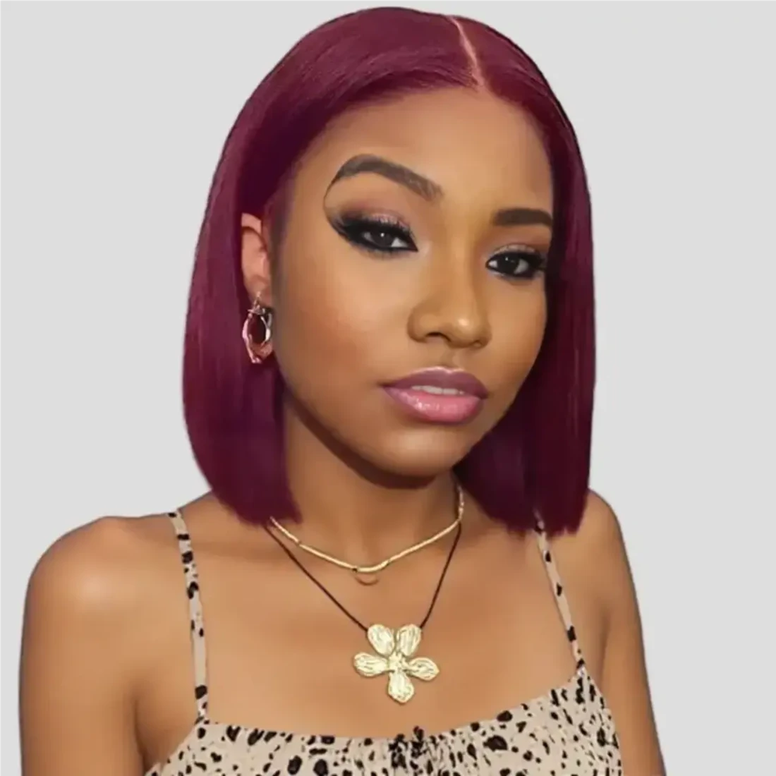 99J Burgundy 6×5 Glueless Wear Go Straight Transparent Lace Human Hair Wigs Pre Plucked Short Bob Wig