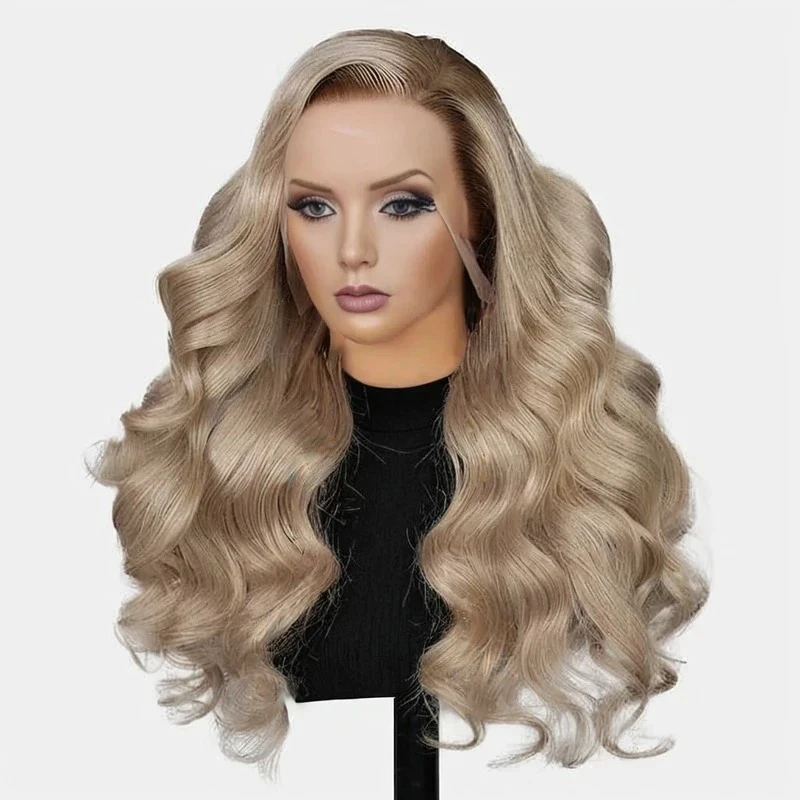 6×5 Invisible Knots & 13×4 Pre-All Glueless Ash Blonde Ombre Loose Body Wave Wigs Natural Hairline