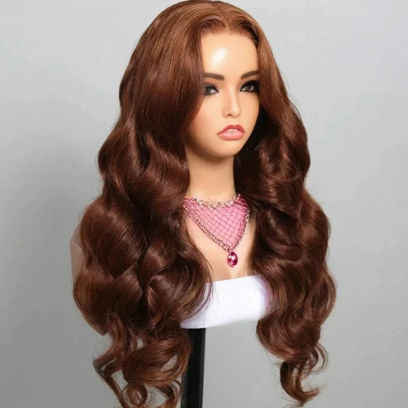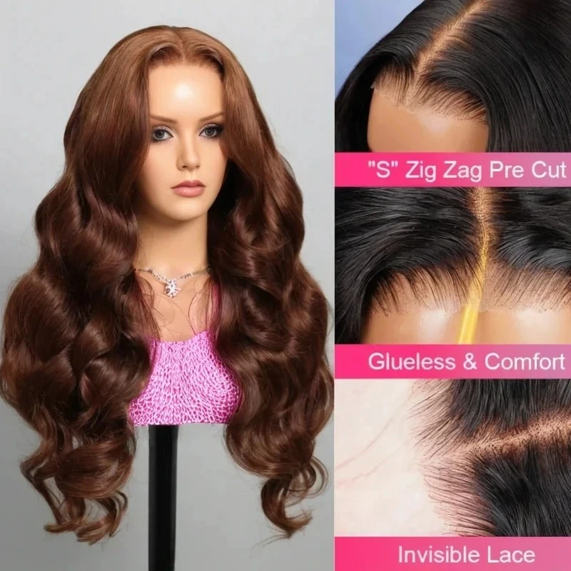 13×4 Pre-All Glueless Chocolate Brown Body Wave Wigs Invisible Knots Natural Hairline