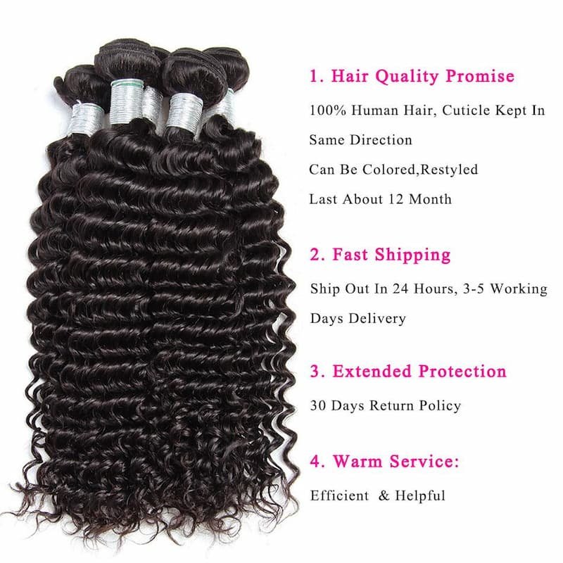 3Bundles Brazilian Deep Wave Hair With 13*4 Ear to Ear Lace Frontal Closure 10A Grade Deal