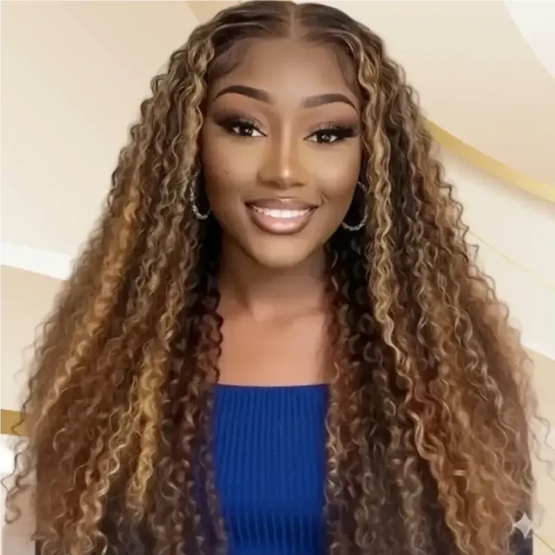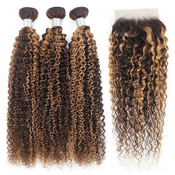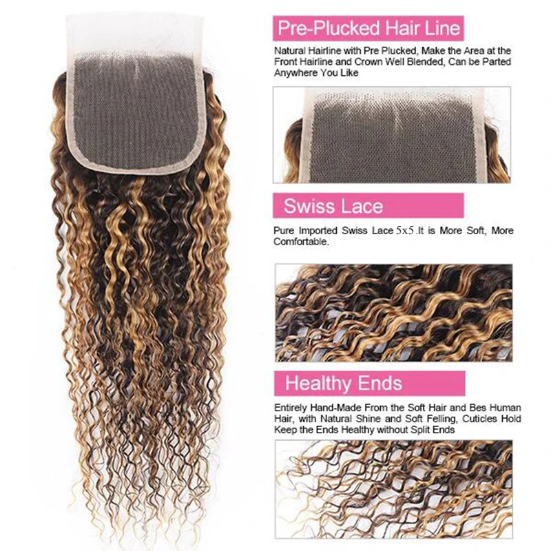 Honey Blonde Highlight Bundles With 5×5 Lace Closure Virgin Human Hair Highlight Curly Hair