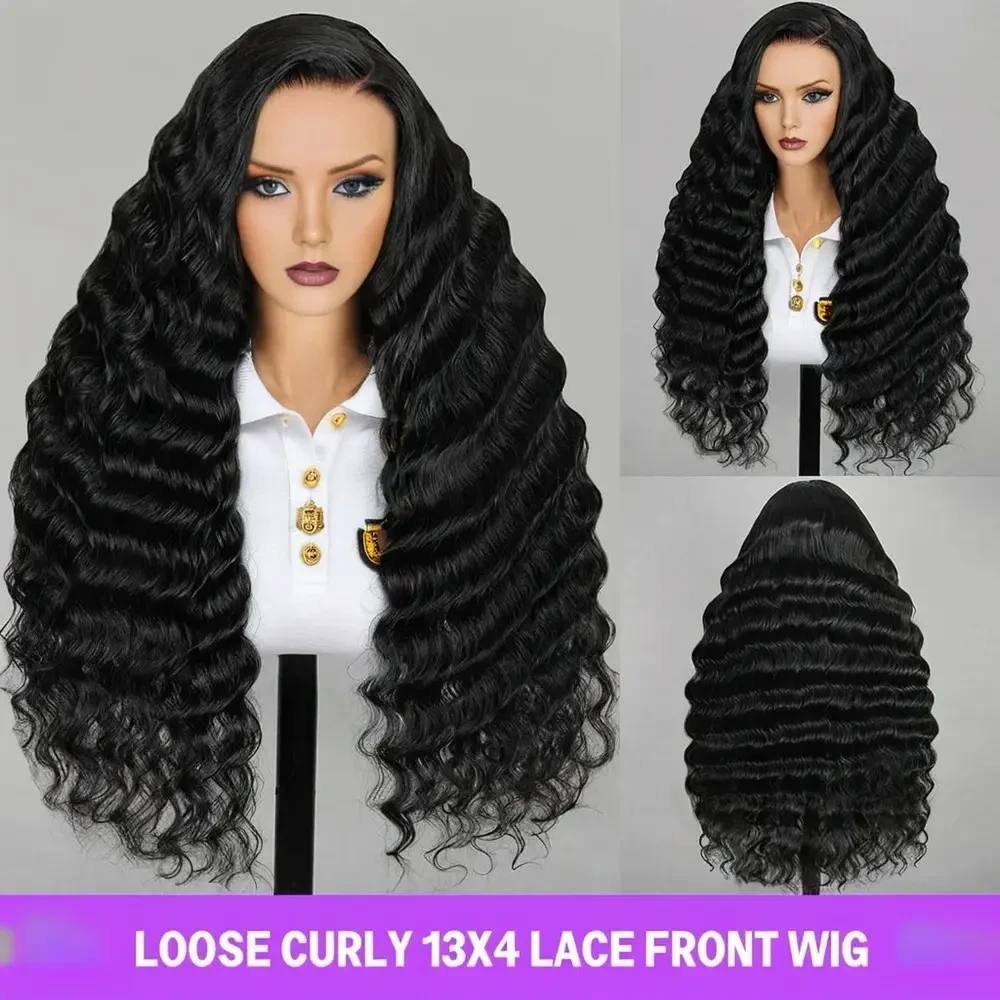Loose Curl Water Wave 13×4 Transparent Lace Front Wigs 18-30 Inch 150% 200% Density Human Hair Curly Wigs