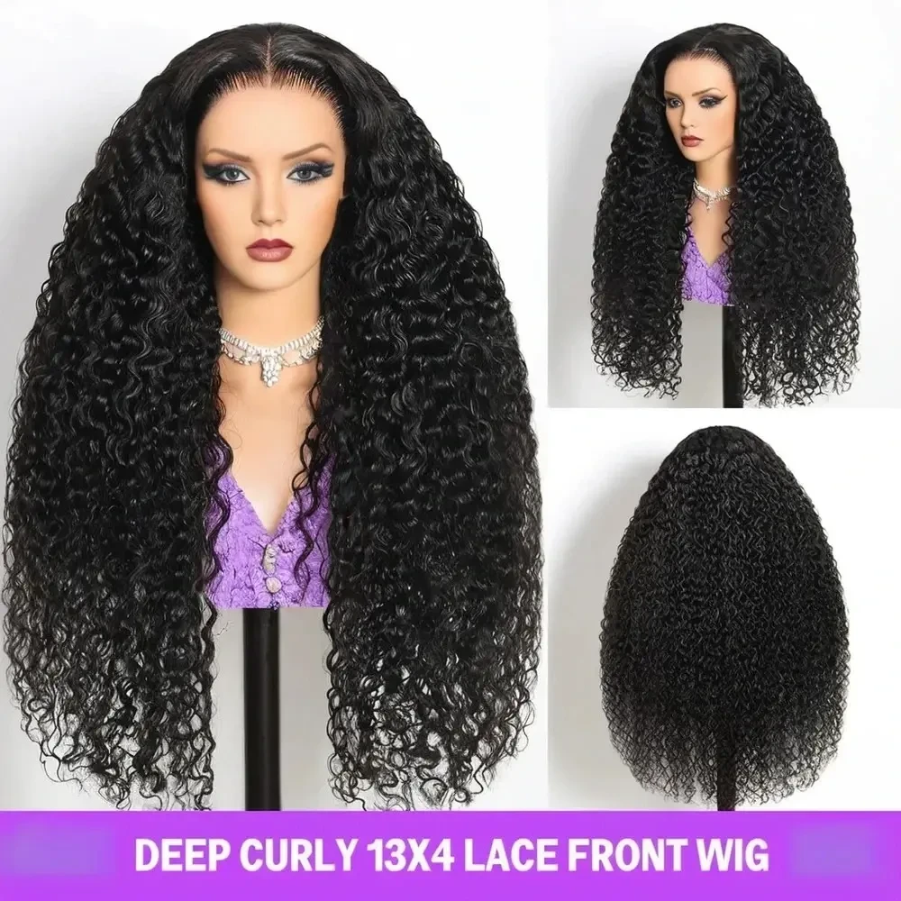 Curly Wig 13×4 Transparent Lace Front Wig 180% Density Human Hair Wig Natural Hairline With Baby Hair