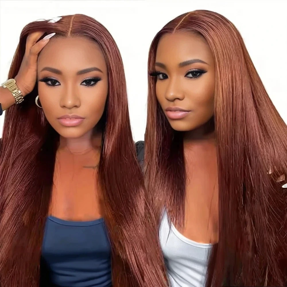 New #33 Red Brown Auburn Color Straight Human Hair Wig HD Lace 13×4 Lace Frontal Wigs