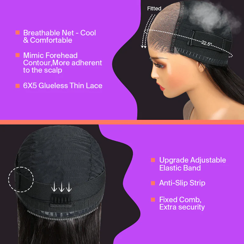 6×5 Invisible Knots & 13×4 Pre-All Glueless Silky Straight Wigs Realistic Hairline Natural Black Beginner Friendly