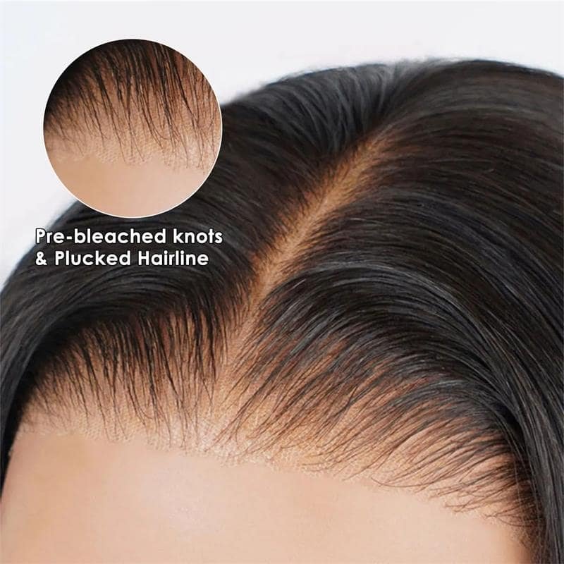 13×4 Pre-All Glueless Straight Bob Invisible Knots Natural Black Natural Hairline