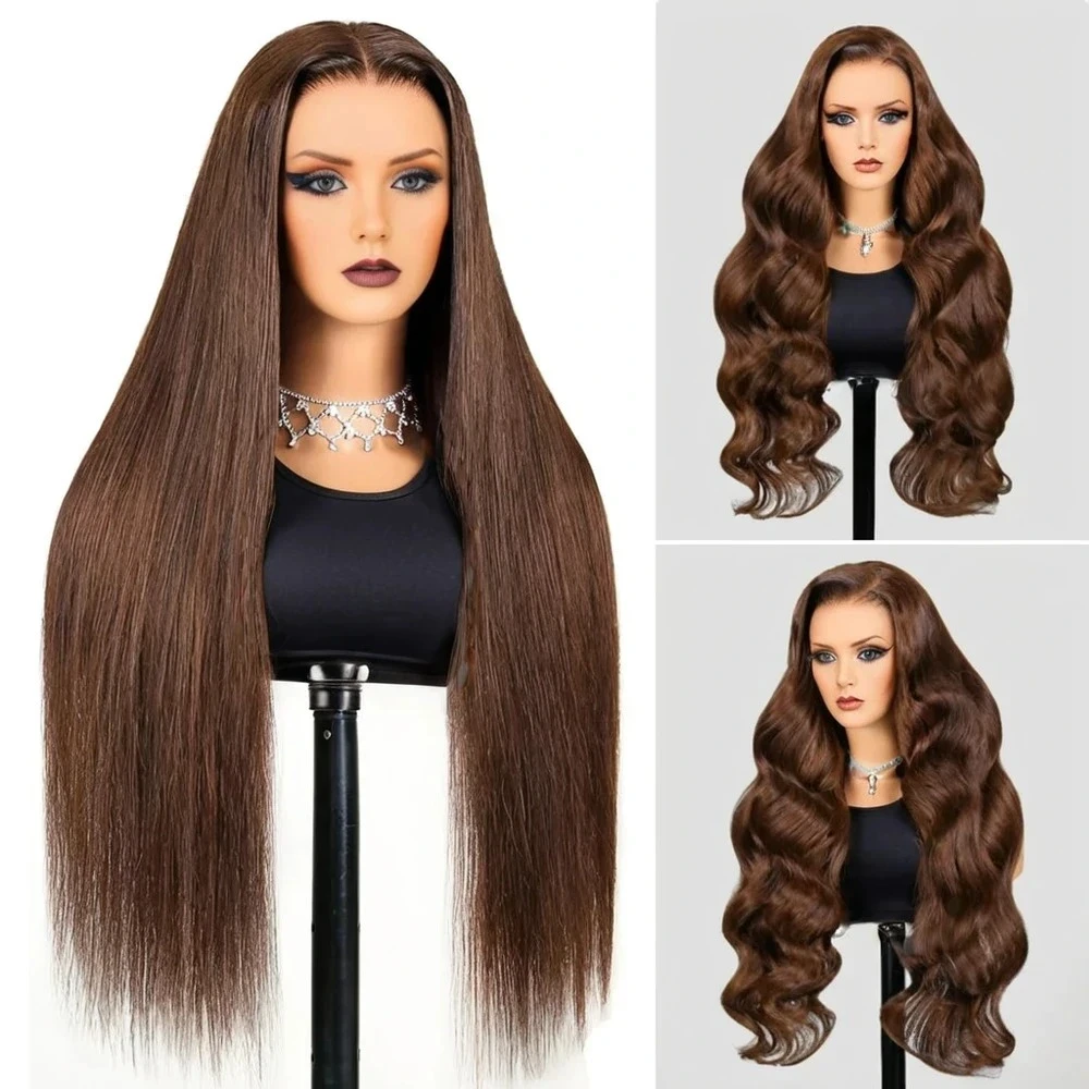 Chocolate Brown 13×4 6×5 Pre Cut Transparent Lace Frontal Closure Wigs #4 Dark Brown Color