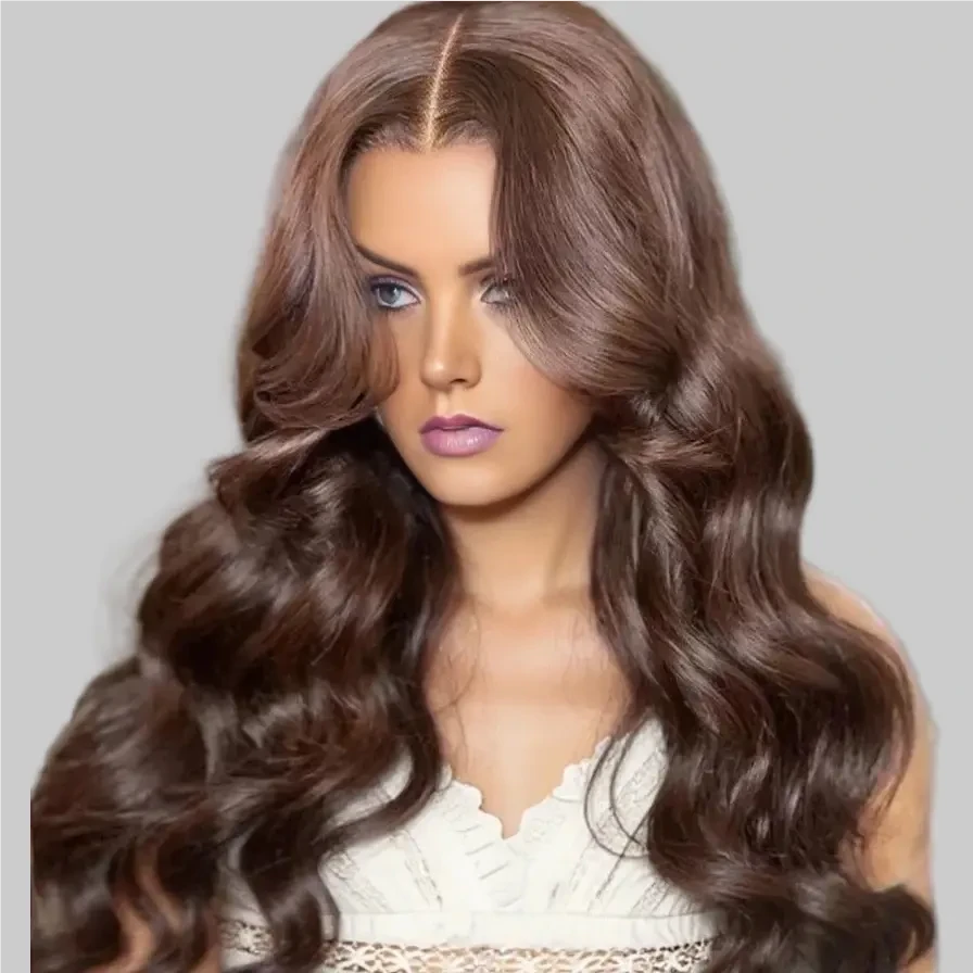 Color #4 Chocolate Brown Loose Body Wave 6×5 Lace 3D DOME Cap Wear Go C Part Glueless Mini Knots Pre-plucked Hair Pre-cut Lace Wig