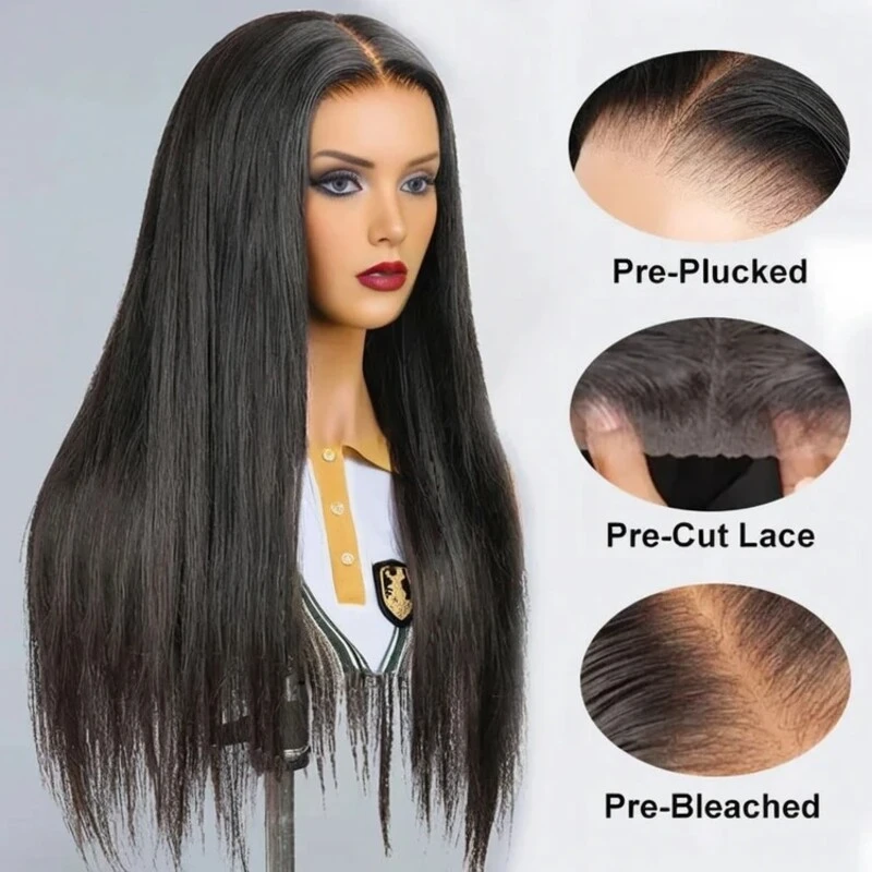 6×5 Invisible Knots & 13×4 Pre-All Glueless Silky Straight Wigs Realistic Hairline Natural Black Beginner Friendly