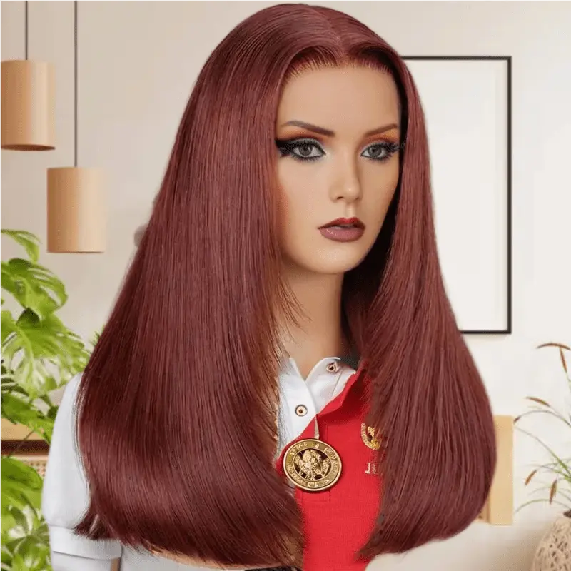Salon-Quality Red Brown Luxurious Glueless 6X5 HD Lace Wig Silky Straight Colored Double Drawn Wig