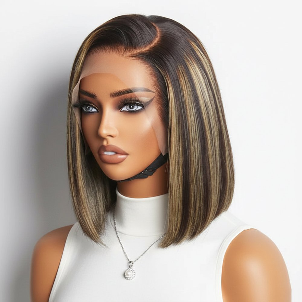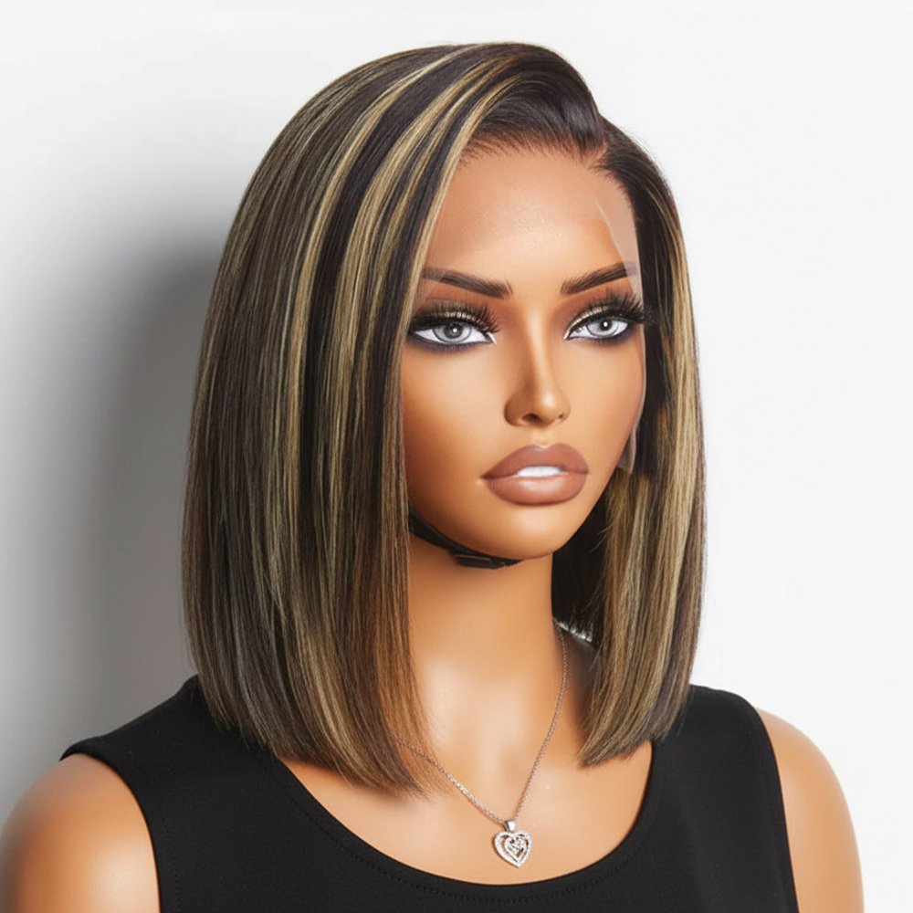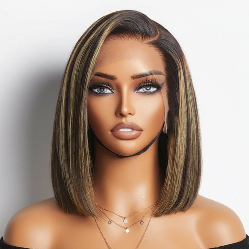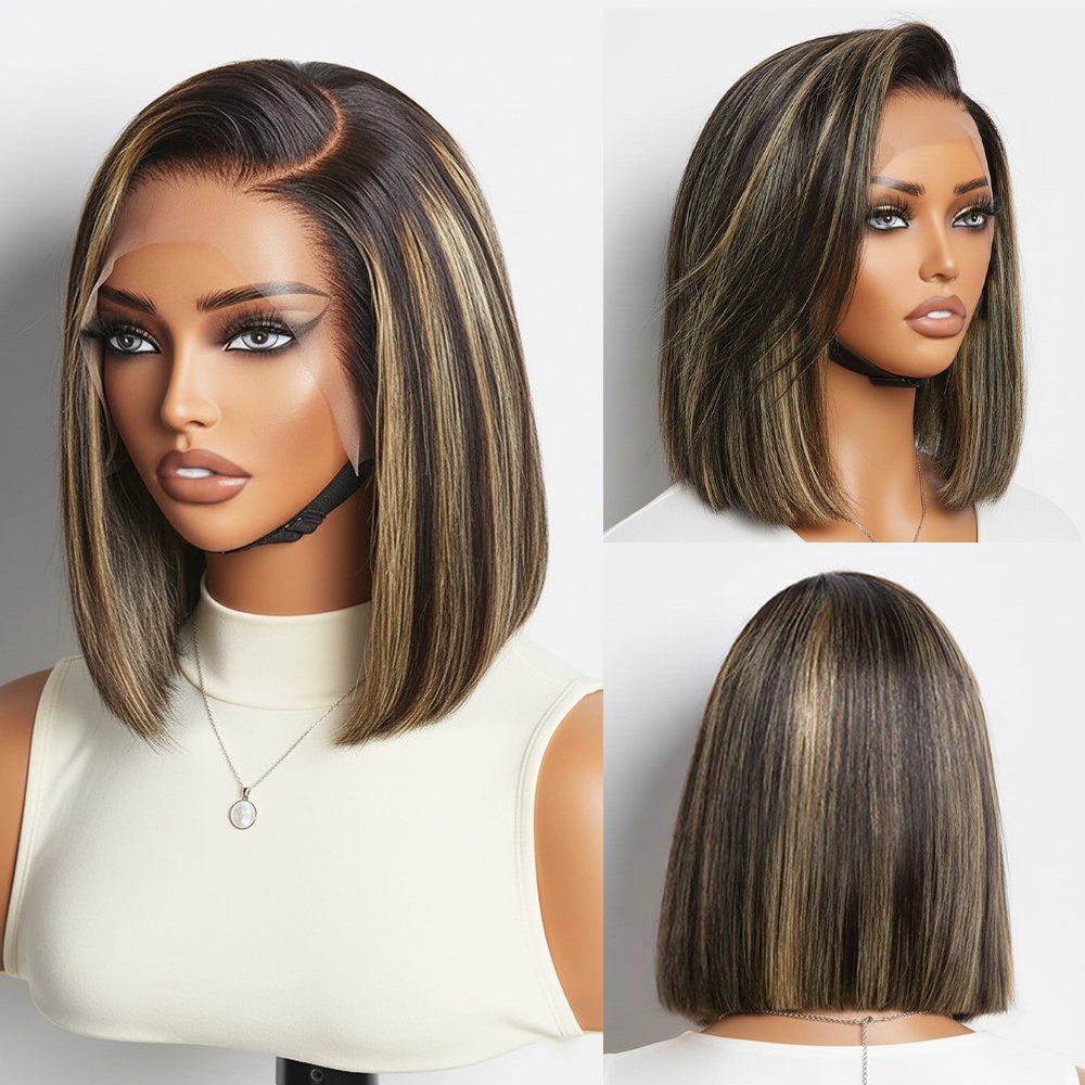 Short Bob Highlight Balayage Color 13×4 Lace Front Wig 10inch Human Hair Wigs