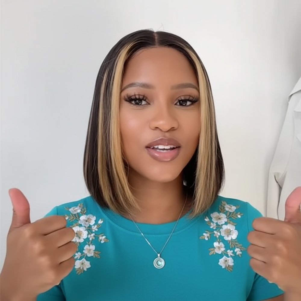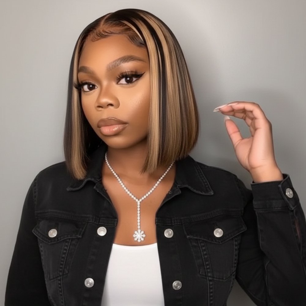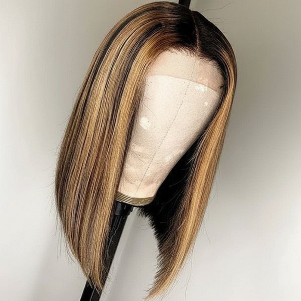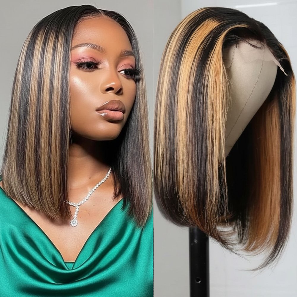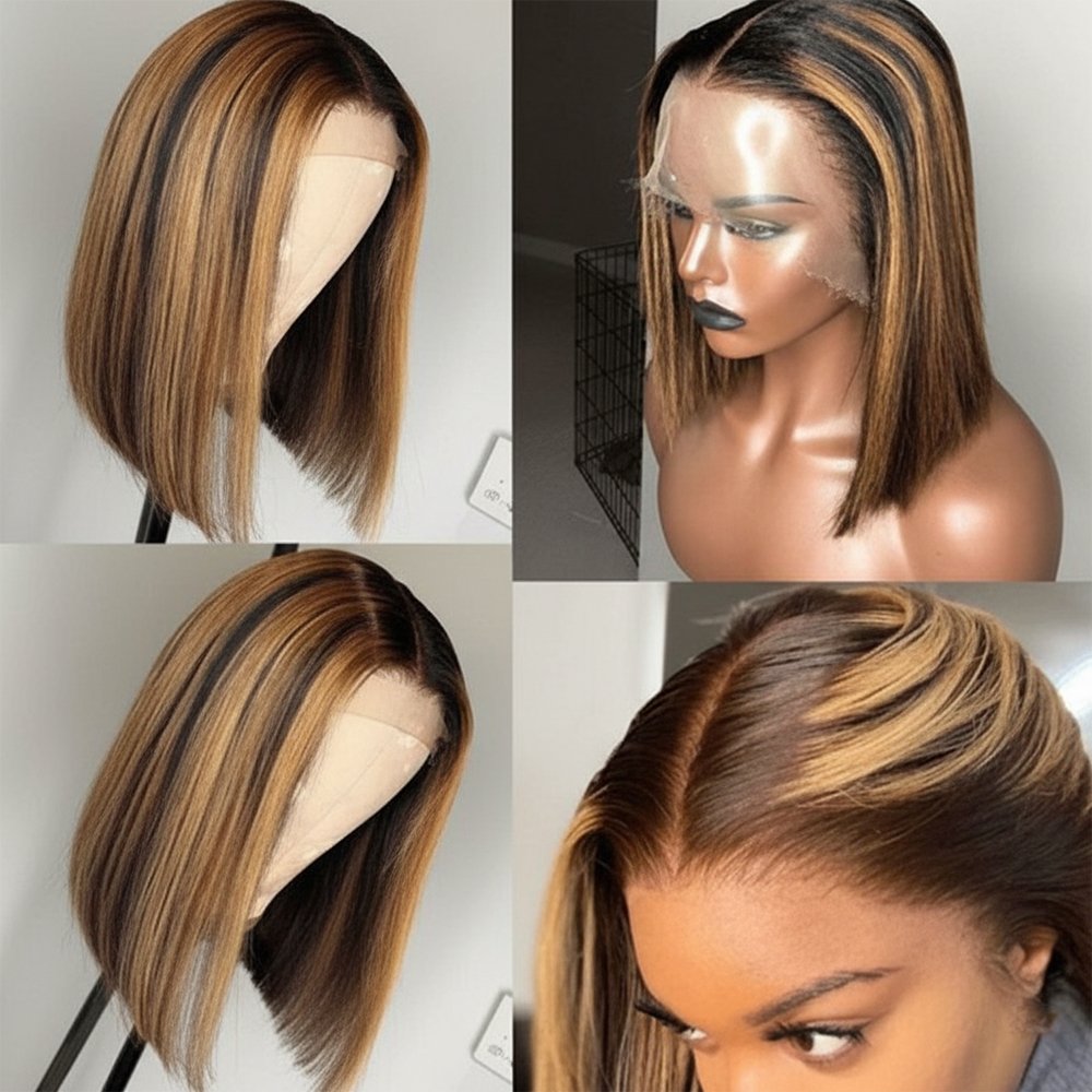 Short Bob Highlight Balayage Color 13×4 Lace Front Wig 10inch Human Hair Wigs